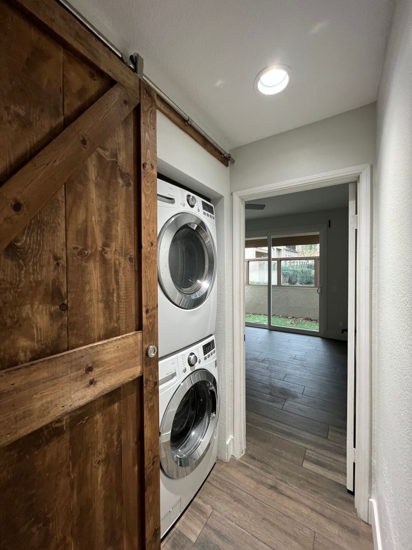 Got to see this light/bright lower unit with a large wrap around patio. It has two bedroom suites with a split floor plan. Master has large bath, two sets of closets and a door leading to the patio. Other bedroom has it's own private patio. Open kitchen has breakfast bar, upgraded appliances and nearly newer stainless steel refrigerator and microwave that stay. Stackable washer and dryer also included. Large living room with fireplace and very spacious formal dining area. This freshly painted property is in excellent condition. Central heat and AC with Nest Thermostat. Close to entertainment, shopping, restaurants, schools and much more. This home has a self view feature. For more details email FrankieM@7gpropertymanagement.com Good credit and verifiable income is a must. Currently occupied. 24 hour notice needed for showings.